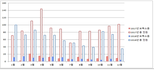 | ¡ã ¼¿ï½Ã Ãþ°£¼ÒÀ½»ó´ã½Ç º¸º¹¼ÒÀ½ ¹Î¿ø »ó´ã ÇöȲ(2017³â 1¿ù~2018³â 12¿ù). <Á¦°ø=¼¿ï½Ã> |