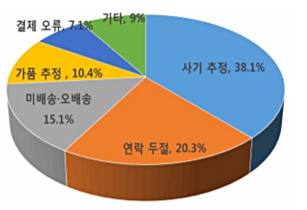 ÁÖ¿ä ǰ¸ñÀ¸·Î´Â ‘ÀÇ·ù¤ý½Å¹ß’ÀÌ 41.3%·Î °¡Àå ¸¹¾Ò°í °¡¹æ, ¾Ç¼¼¼¸® µî ‘½Åº¯¿ëǰ’ÀÌ 33.5%·Î ±× µÚ¸¦ À̾ú´Ù. ¼ÒºñÀÚ ºÒ¸¸»çÀ¯´Â ‘»ç±â ÃßÁ¤’ÀÌ 38.1%·Î °¡Àå ¸¹¾ÒÀ¸¸ç, ‘»ç¾÷ÀÚ ¿¬¶ôµÎÀý’ 20.3%, ‘¹Ì¹è¼Û·¿À¹è¼Û’ 15.1%, °¡Ç° ÃßÁ¤’ 10.4% ¼øÀ̾ú´Ù.