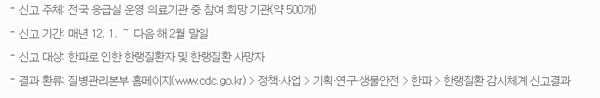 ÀüÀÏ ´ëºñ ±â¿ÂÀÌ Å©°Ô ¶³¾îÁö´Â ÇÑÆÄ ½Ã¿¡ ÇÑ·©ÁúȯÀÚ°¡ Áõ°¡Çß°í, ±â¿Â ³«ÆøÀÌ ÄÇ´ø 12¿ù Ãʼø¿¡ »ç¸ÁÀÚ°¡ ÁýÁ߹߻ý(55%, 6¸í)Çß´Ù.