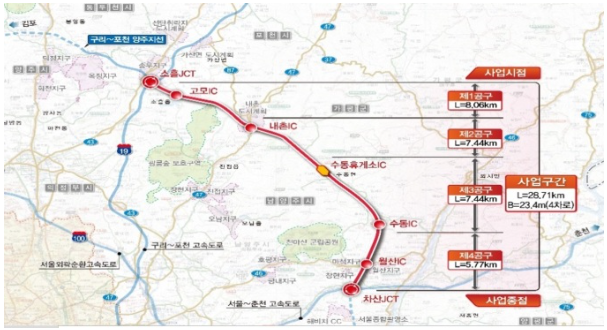 Æ÷õ~ȵµ °í¼Óµµ·Î ¹Î°£ÅõÀÚ»ç¾÷Àº BTO(Build-Transfer-Operate) ¹æ½ÄÀ¸·Î ÃßÁøµÇ¸ç Æ÷õ½Ã ¼ÒÈêÀ¾ ¼ÒÈê ºÐ±âÁ¡¿¡¼ ³²¾çÁֽà ȵµÀ¾ Â÷»ê ºÐ±âÁ¡±îÁö ¿¬°áÇÏ´Â 28.71§°ÀÇ ¿Õº¹ 4Â÷¼± °í¼Óµµ·Î´Ù. BTO´Â ¹Î°£ÀÌ ½Ã¼³À» °Ç¼³Çϰí ÀÏÁ¤±â°£ Á÷Á¢ ½Ã¼³À» ¿î¿µÇØ ¹Î°£»ç¾÷ÀÚ°¡ »ç¾÷¿¡¼ Á÷Á¢ ¼öÀÍÀ» °ÅµÎ´Â ¹æ½ÄÀÌ´Ù.