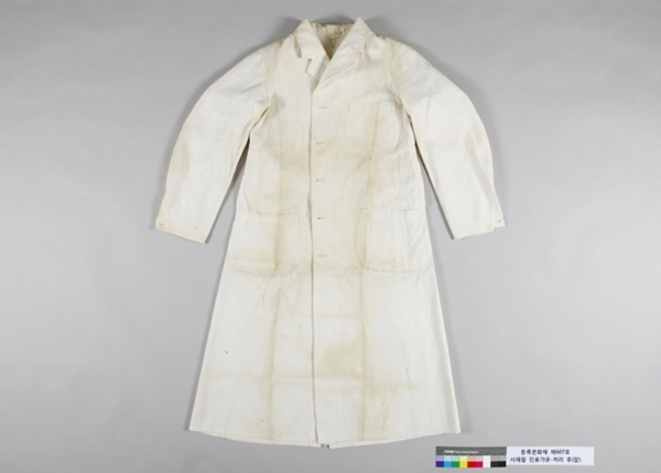 ‘¼ÀçÇÊ Áø·á°¡¿î’Àº °©½ÅÁ¤º¯ÀÇ ÁÖ¿ªÀÌÀÚ µ¶¸³½Å¹® â°£ÀÚÀÎ ¼ÀçÇÊ(ßïî°ù°, 1864~1951) ¹Ú»ç°¡ ÀÇ»ç ½ÃÀý¿¡ Âø¿ëÇß´ø Áø·áº¹ÀÌ´Ù. ĵ¹ö½º Á¶Á÷À¸·Î µÈ ¸éÁ÷¹°·Î ¸¸µé¾îÁ³°í, Áø·á°¡¿îÀÇ ¾ÈÂÊ¿¡´Â ¼ÀçÇÊÀÇ ¿µ¹®À̸§ÀÎ Çʸ³ Á¦À̽¼(Philip Jaisohn)¿¡ °¡¿îµ¥ ‘S’°¡ µé¾î°£ ‘Dr. P. S. J.’ÀÇ À̴ϼÈÀÌ ºÙ¾î ÀÖ´Ù. ±×¸®°í Áø·á°¡¿îÀ» ½ÇÁ¦ Á¦ÀÛÇÑ ¹Ì±¹ Çʶóµ¨ÇǾÆÀÇ ‘C. D. Williams & Co’ÀÇ »óÈ£¿Í ÁÖ¼Ò ¶óº§µµ ºÙ¾î ÀÖ´Ù.