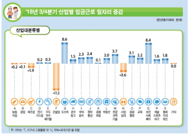 | ¡ã 2018³â 3ºÐ±â »ê¾÷º° ÀӱݱٷΠÀÏÀÚ¸® Áõ°¨. <Á¦°ø=Åë°èû> |