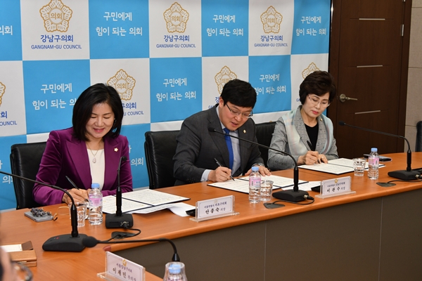 | ¡ã ÀÌ´Þ 26ÀÏ °³²¤ý¼Ãʤý¼ÛÆÄ±¸ÀÇȸ ÀÇÀåµéÀÌ Çù¾à¼¿¡ ¼¸íÀ» Çϰí ÀÖ´Ù(ÁÂÃøºÎÅÍ ¼Ãʱ¸ÀÇȸ ¾ÈÁ¾¼÷ ÀÇÀå, °³²±¸ÀÇȸ À̰ü¼ö ÀÇÀå, ¼ÛÆÄ±¸ÀÇȸ À̼ºÀÚ ÀÇÀå). <Á¦°ø=°³²±¸ÀÇȸ> |