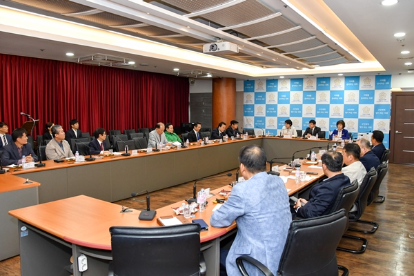 [¾ÆÀ¯°æÁ¦=Á¶Çö¿ì ±âÀÚ] °³²±¸ÀÇȸ(ÀÇÀå À̰ü¼ö)´Â 25ÀÏ ¿ÀÈÄ ±¸ÀÇȸ 6Ãþ ¿¸°È¸Àǽǿ¡¼ »õ¸¶À»ÁöµµÀÚ °³²±¸ÇùÀÇȸ(ȸÀå ¶ó¸íÂù) ȸ¿øµé°ú °£´ãȸ¸¦ °¡Á³´Ù.