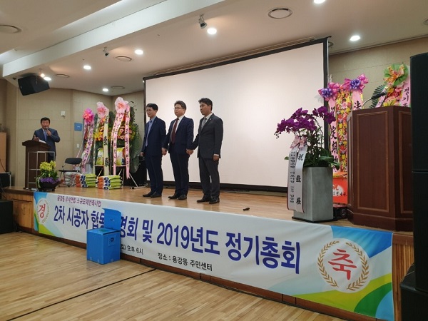 | ¡ã Áö³ 6¿ù 29ÀÏ ¿ì¼®¿¬¸³ ¼Ò±Ô¸ðÀç°ÇÃà Á¤ºñ»ç¾÷Á¶ÇÕÀº ½Ã°øÀÚ¼±Á¤ÃÑȸ¸¦ ¿°í ÄÚ¿À·Õ±Û·Î¹úÀ» ½Ã°øÀÚ·Î ¼±Á¤Çß´Ù. <Á¦°ø=ÇØ´ç Á¶ÇÕ> |