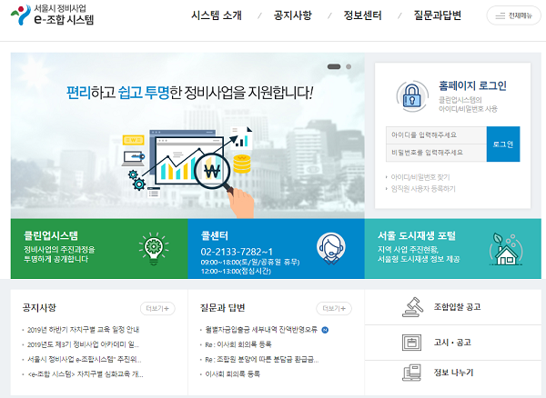 ¼¿ï½Ã´Â Àç°³¹ß¤ýÀç°ÇÃà Á¶ÇÕ¤ýÃßÁøÀ§¸¦ Åõ¸íÇÏ°Ô ¿î¿µÇÏ°í °¢Á¾ ³»ºÎ ºñ¸®¿äÀÎÀ» Á¦°ÅÇϱâ À§ÇØ 2017³âºÎÅÍ ‘Á¤ºñ»ç¾÷ e-Á¶ÇÕ ½Ã½ºÅÛ’ ±¸Ãà¤ý¿î¿µÇϰí ÀÖ´Ù. °ú°Å ¼ö±â·Î ÀÛ¼ºµÆ´ø ¿¹»ê, ȸ°è, °è¾à´ëÀå, ±Þ¿© °ü¸® µî Àç°³¹ß¤ýÀç°ÇÃà Á¶ÇÕ¤ýÃßÁøÀ§¿¡¼ »ý»êµÇ´Â ¸ðµç ¹®¼°¡ ÀüÀÚ°áÀ縦 ÅëÇØ 100% ÀüÀÚȵǰí, Á¶ÇÕ¿øµé¿¡°Ô ¿Â¶óÀÎÀ¸·Î ½Ç½Ã°£ °ø°³µÇ´Â ½Ã½ºÅÛÀÌ´Ù.