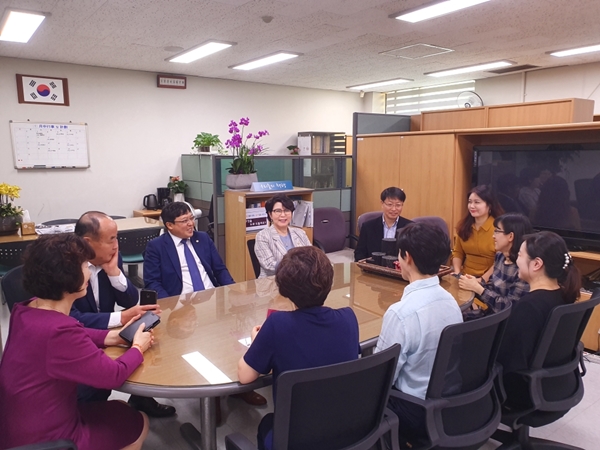 | ¡ã °³²±¸ÀÇȸ ÀÇ»ó´ÜÀÌ °³²±¸Ã» À繫°ú¸¦ ¹æ¹®ÇØ ÀüÃâÁ÷¿ø°ú ȯ´ãÀ» ³ª´©°í ÀÖ´Ù. <Á¦°ø=°³²±¸ÀÇȸ> |