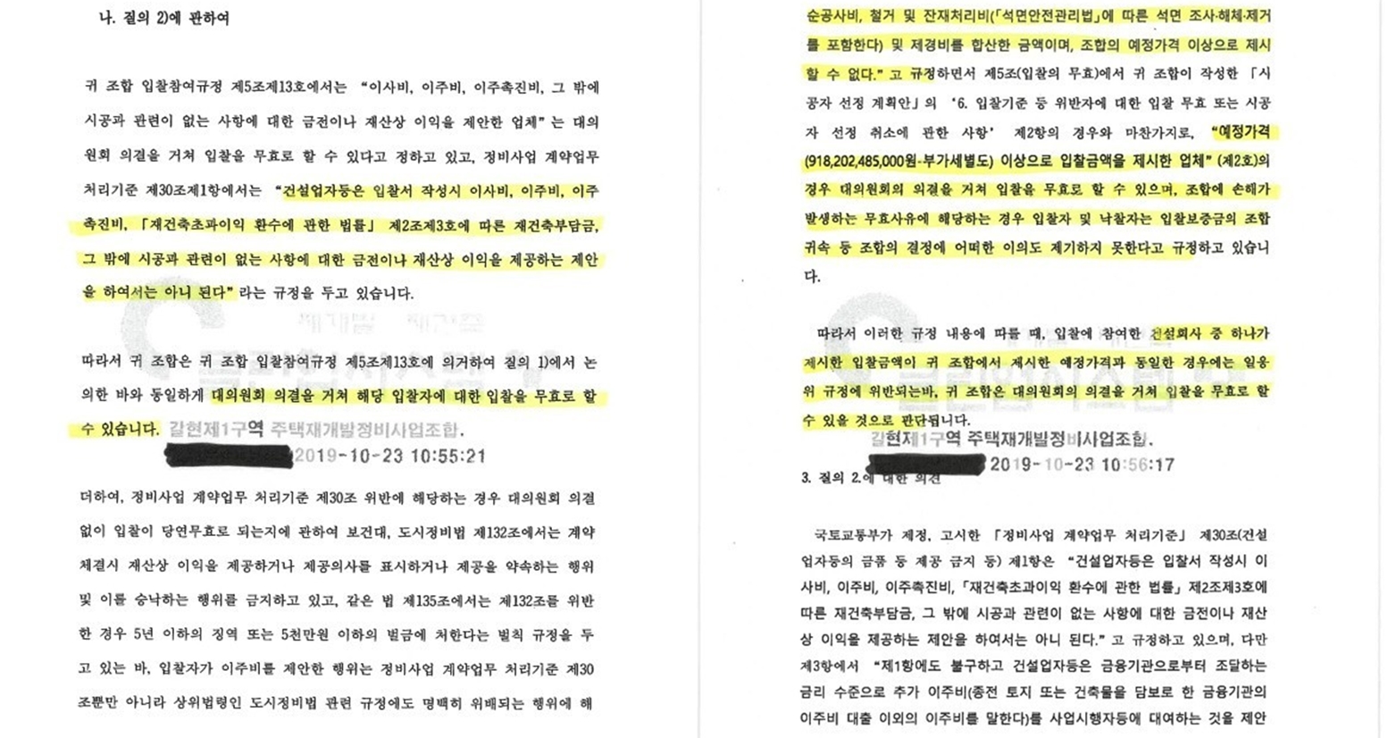 Çö´ë°Ç¼³ ÃøÀº “ÇØ¸íÇÒ ±âȸµµ ÁÖÁö ¾Ê°í ±ÞÇÏ°Ô ÀÔÂû ¹«È¿¸¦ ¹Ð¾îºÙÀÌ´Â °Íµµ ÀÌÇØÇÒ ¼ö ¾ø´Ù”¸é¼ ¶ÇÇÑ È¸»ç´Â “°áÄÚ »ç¾÷Á¦¾È¼¿¡´Â À§¹Ý »çÇ×ÀÌ ¾ø´Ù”°í ¹Ý¹ÚÇϸç Á¶ÇÕÀÌ ´ëÀÇ¿øÈ¸¿¡¼ ÀÔÂû ¹«È¿ ¾È°ÇÀ» Åë°ú½Ãų °æ¿ì Á¶ÇÕ ¹× ÇØ´ç ´ëÀÇ¿øÀ» »ó´ë·Î ¹ÎÇü»ç»ó ¼Ò¼Ûµµ ºÒ»çÇÑ´Ù´Â ÀÔÀåÀ¸·Î ¾Ë·ÁÁ³´Ù.