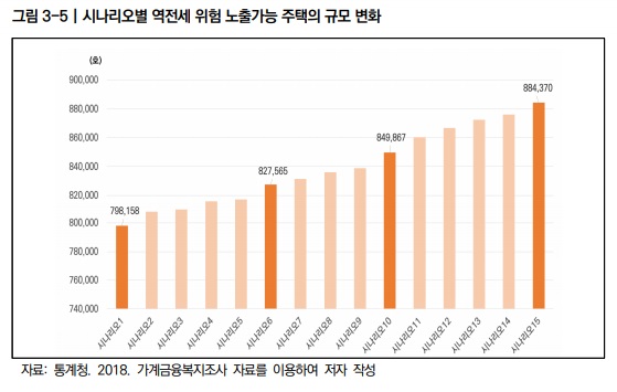 º¸°í¼´Â Àü¼¼°¡°Ý Ç϶ô·ü¿¡ µû¶ó °¢°¢ÀÇ ½Ã³ª¸®¿À¸¦ ±¸¼ºÇØ ºÐ¼®Çß°í, Àü¼¼°¡°Ý 1% Ç϶ô½Ã ¿ªÀü¼¼ À§Çè ³ëÃâµÇ´Â ÁÖÅà °¡±¸¼ö´Â 80¸¸ °¡±¸, 7% Ç϶ô½Ã 83¸¸ °¡±¸, 15% Ç϶ô½Ã 88¸¸ °¡±¸·Î ºÐ¼®Çß°í ÀÌ´Â Àü¼¼ÁÖÅÃÀÇ 40% ÀÌ»ó¿¡ ÇØ´çÇÑ´Ù°í ÀüÇß´Ù.