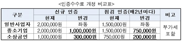 À̹ø °³Á¤À¸·Î ¼Ò»ó°øÀÎÀÇ °æ¿ì 100¸¸ ¿ø¿¡¼ 30¸¸ ¿øÀ¸·Î, Áß¼Ò±â¾÷ÀÇ °æ¿ì 200¸¸ ¿ø¿¡¼ 100¸¸ ¿øÀ¸·Î ÀÎÁõ ¼ö¼ö·á¸¦ ÀÎÇÏÇØ ÇâÈÄ Èñ¸Á»ç¾÷ÀÚµéÀÌ Àû±ØÀûÀ¸·Î ºÎµ¿»êÀÎÁõÀ» ½ÅûÇÒ °ÍÀ¸·Î ±â´ëµÈ´Ù.