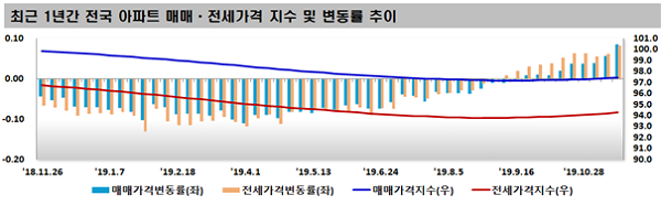 Áö³ 21ÀÏ Çѱ¹°¨Á¤¿øÀÌ ¹ßÇ¥ÇÑ ‘ÁÖ°£¾ÆÆÄÆ® °¡°Ýµ¿Çâ’¿¡ µû¸£¸é 11¿ù ¼Â° ÁÖ(ÀÌ´Þ 18ÀÏ ±âÁØ) ¼¿ï ¾ÆÆÄÆ®°ªÀº 0.1% »ó½ÂÇØ ÀüÁÖ(0.09%)º¸´Ù ¿À¸§ÆøÀ» Ű¿ì¸ç 21ÁÖ ¿¬¼Ó ¿Ã¶ú´Ù.