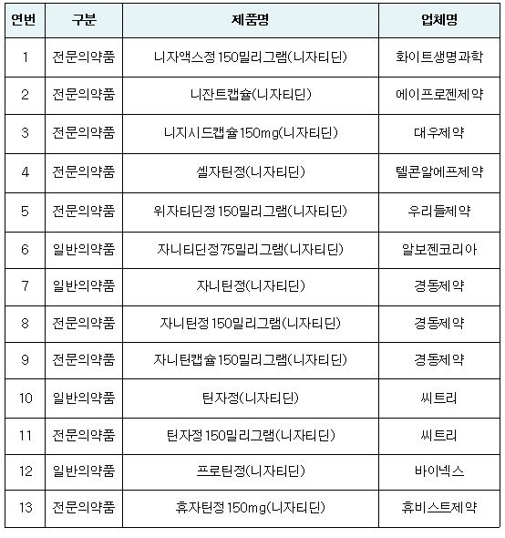 | ¡ã ¹ß¾Ï ¿ì·Á ¹°Áú NDMA°¡ °ËÃâµÈ ´ÏÀÚÆ¼µò ÇÔÀ¯ ÀǾàǰ 13°³ ¸ñ·Ï. <Ãâó=½ÄǰÀǾàǰ¾ÈÀüó> |