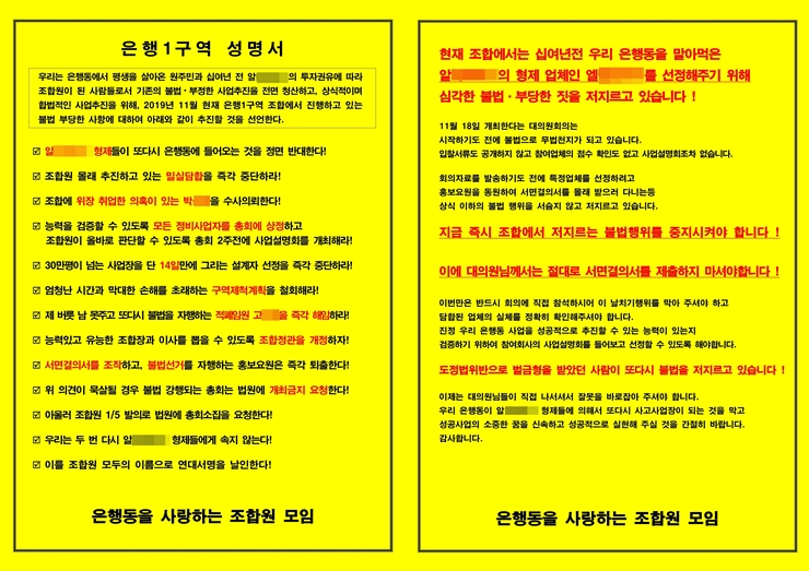À̰÷ÀÇ ÇÑ Á¶ÇÕ¿øÀº “°ú°Å ÀºÇà1±¸¿ªÀ» ¾û¸ÁÀ¸·Î ¸¸µé¾ú´ø ¾÷üÀÇ Ä£ÀÎôÀ» »Ì±â À§ÇÑ ÆÇÂ¥±â ½Ä ¾÷ü ¼±Á¤À» ¸·¾Æ¾ß ÇÑ´Ù”¸ç “Á¶ÇÕ¿øµéÀÇ Á¤È®ÇÑ ÆÇ´ÜÀÌ ÇÊ¿äÇÏ´Ù”°í ºñÆÇÇß´Ù.