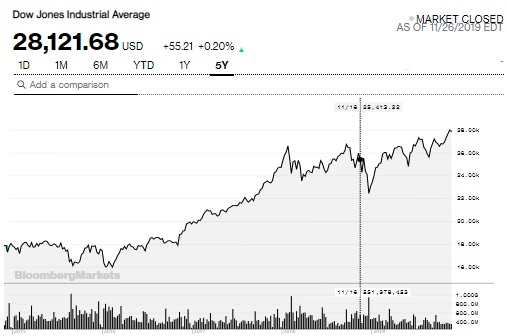 | ¡ã Áö³ 26ÀÏ(ÇöÁö½Ã°£) ±âÁØ ´Ù¿ìÁ¸½º»ê¾÷Æò±ÕÁö¼öÀÇ 5³â°£ ÃßÀÌ. <Á¦°ø=Bloomberg> |