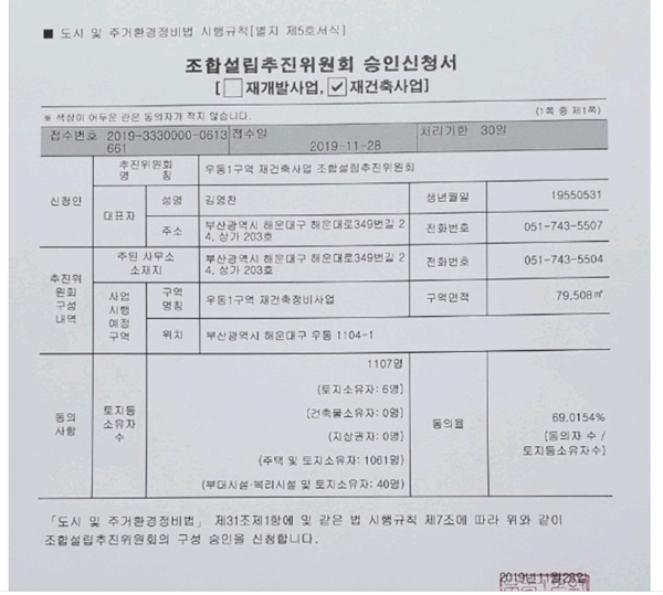 | ¡ã ºÎ»ê ¿ìµ¿1±¸¿ª Àç°ÇÃà ÃßÁøÀ§°¡ Á¶ÇÕ¼³¸³µ¿ÀÇÀ² ¾à 69.01%¸¦ ¾ò¾î³»¸ç Á¶ÇÕ¼³¸³Àΰ¡¸¦ ´«¾Õ¿¡ µÎ°í ÀÖ´Ù. <»çÁø=¾ÆÀ¯°æÁ¦ DB> |