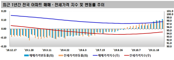 12ÀÏ Çѱ¹°¨Á¤¿øÀÌ ¹ßÇ¥ÇÑ ‘ÁÖ°£¾ÆÆÄÆ® °¡°Ýµ¿Çâ’¿¡ µû¸£¸é 12¿ù µÑ° ÁÖ(ÀÌ´Þ 9ÀÏ ±âÁØ) ¼¿ï ¾ÆÆÄÆ®°ªÀº 0.17% »ó½ÂÇØ ÀüÁÖ(0.13%)º¸´Ù ¿À¸§ÆøÀ» Ű¿ì¸ç 24ÁÖ ¿¬¼Ó ¿Ã¶ú´Ù.