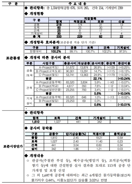 ±¹Åä±³ÅëºÎ(Àå°ü ±èÇö¹Ì¤ýÀÌÇÏ ±¹ÅäºÎ)´Â ÀÌ´Þ 1ÀϺÎÅÍ Àû¿ëÇÒ °Ç¼³°ø»ç Ç¥ÁؽÃÀå´Ü°¡ ¹× Ç¥ÁØÇ°¼ÀÀ» °³Á¤¤ý°ø°íÇß´Ù.
