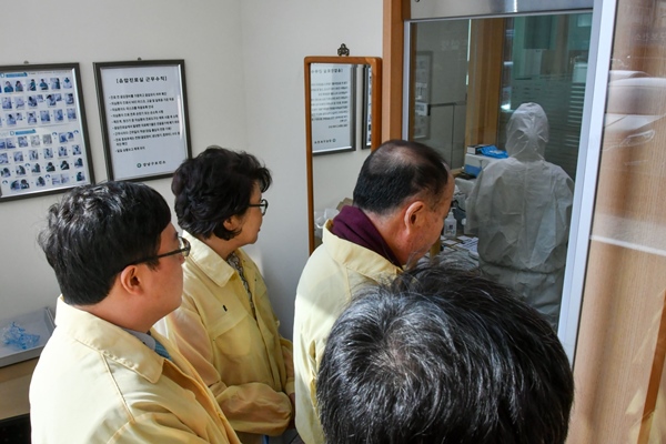 [¾ÆÀ¯°æÁ¦=Á¶Çö¿ì ±âÀÚ] °³²±¸ÀÇȸ(ÀÇÀå À̰ü¼ö)´Â ÀÌ´Þ 7ÀÏ ¿ÀÈÄ º¸°Ç¼Ò¿¡ ¸¶·ÃµÈ °³²±¸ Àç³¾ÈÀü´ëÃ¥º»ºÎ¸¦ ¹æ¹®ÇØ ½ÅÁ¾ Äڷγª¹ÙÀÌ·¯½º °¨¿°Áõ ´ëÀÀü°è¸¦ »ìÇÇ°í ±Ù¹«ÀÚµéÀ» °Ý·ÁÇß´Ù.