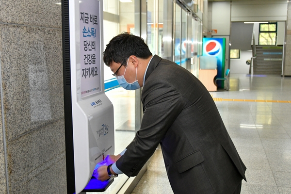 | ¡ã À̰ü¼ö ÀÇÀåÀÌ ÀÌ´Þ 27ÀÏ °³²±¸¹Îȸ°ü Çö°ü ÀÔ±¸¿¡ ¼³Ä¡µÈ ¼Õ¼Òµ¶±â·Î ¼ÕÀ» ¼Òµ¶Çϰí ÀÖ´Ù. <Á¦°ø=°³²±¸ÀÇȸ> |