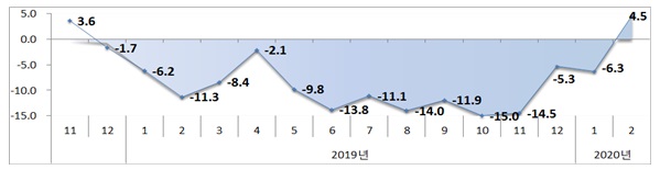 »ê¾÷ºÎ °ü°èÀÚ´Â “Áö³ÇØ 10¿ù ¼öÃâ ÀúÁ¡ ÀÌÈÄ °¨¼Ò¼¼°¡ Áö¼ÓÀûÀ¸·Î °³¼± Ãß¼¼¸¦ º¸ÀÎ °¡¿îµ¥, Äڷγª19 È®»ê¿¡µµ ºÒ±¸Çϰí ÀÌ´Þ ¼öÃâÀÌ 15°³¿ù ¸¸¿¡ Ç÷¯½º·Î ÀüȯÇß´Ù”¸ç “´Ù¸¸, Äڷγª19 ¿µÇâÀÌ Àå±â鵃 °æ¿ì ¼¼°è °æ±â µÐÈ¿¡ µû¸¥ ±³¿ª ºÎÁø ¹× Áß±¹¹ß ¼ö¿ä µÐÈ·Î ¿ÃÇØ 3¿ù ÀÌÈÄ ¼öÃâÀº ³ì·ÏÁö ¾ÊÀ» Àü¸Á”À̶ó°í ¤¾ú´Ù.