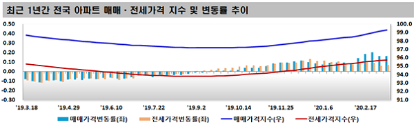 Áö³ 12ÀÏ Çѱ¹°¨Á¤¿øÀÌ ¹ßÇ¥ÇÑ ‘ÁÖ°£¾ÆÆÄÆ® °¡°Ýµ¿Çâ’¿¡ µû¸£¸é 3¿ù µÑ° ÁÖ(ÀÌ´Þ 9ÀÏ ±âÁØ) ¼¿ï ¾ÆÆÄÆ®°ªÀº 0.02% »ó½ÂÇØ Áö³ÁÖ(0.01%)º¸´Ù ¿À¸§ÆøÀÌ ¼ÒÆø È®´ëµÆ´Ù.