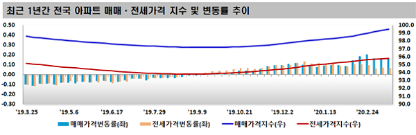 19ÀÏ Çѱ¹°¨Á¤¿øÀÌ ¹ßÇ¥ÇÑ ‘ÁÖ°£¾ÆÆÄÆ® °¡°Ýµ¿Çâ’¿¡ µû¸£¸é 3¿ù ¼Â° ÁÖ(ÀÌ´Þ 16ÀÏ ±âÁØ) ¼¿ï ¾ÆÆÄÆ®°ª »ó½Â·üÀº 0.00%¸¦ ±â·ÏÇß´Ù. Áö³ÇØ 7¿ù 1ÁÖÂ÷ »ó½Â ÀÌÈÄ 37ÁÖ ¸¸¿¡ º¸ÇÕ ÀüȯÇÑ °ÍÀÌ´Ù.