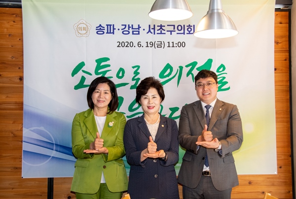 | ¡ã °³²¤ý¼Ãʤý¼ÛÆÄ±¸ÀÇȸ ÀÇÀå´ÜÀÌ ‘´öºÐ¿¡ 縰Áö’ Ä·ÆäÀÎ ¼ö¾îµ¿ÀÛÀ» ÃëÇϰí ÀÖ´Â ¸ð½À(¾ÕÁÙ ¿ìÃø¿¡¼ 1¹øÂ° °³²±¸ÀÇȸ À̰ü¼ö ÀÇÀå, 2¹øÂ° ¼ÛÆÄ±¸ÀÇȸ À̼ºÀÚ ÀÇÀå, 3¹øÂ° ¼Ãʱ¸ÀÇȸ ¾ÈÁ¾¼÷ ÀÇÀå). <Á¦°ø=°³²±¸ÀÇȸ> |