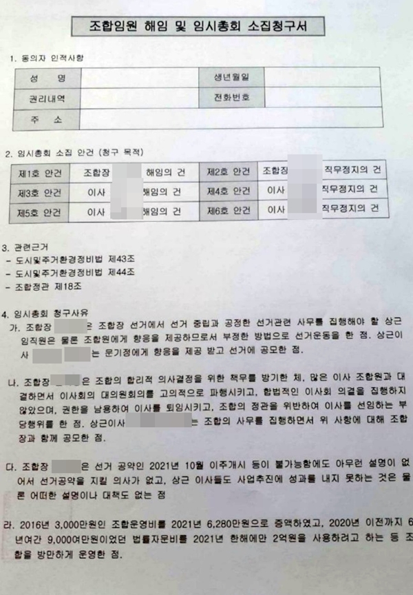 ÇØÀÓÀ» À§ÇÑ ÃÑȸ »çÀ¯·Î´Â °øÁ¤ÇÑ ¾÷¹«¸¦ ÁøÇàÇØ¾ß ÇÒ Á¶ÇÕÀåÀÌ »ó±Ù ÀÓ¿øÀº ¹°·Ð Á¶ÇÕ¿ø¿¡°Ô ÇâÀÀÀ» Á¦°øÇØ ºÎÁ¤ÇÑ ¼±°Å¿îµ¿À» ÁøÇàÇÑ Á¡, »ó±ÙÀÌ»ç ±è¿ìÅÂ, ÀåÄ¡´ë´Â ¹®±âÁ¤¿¡°Ô ÇâÀÀÀ» Á¦°ø¹Þ°í ¼±°Å¿¡ °ø¸ðÇÑ Á¡°ú ÀÌ»çȸ¿Í ´ëÀÇ¿øÈ¸¸¦ °íÀÇÀûÀ¸·Î ÆÄÇà½ÃÄÑ ÇÕ¸®ÀûÀÎ ÀÌ»çȸ ÀǰáÀ» ¹æÇØÇßÀ¸¸ç, ±ÇÇÑÀ» ³²¿ëÇØ À̻縦 ÅðÀÓ½Ã۰í, Á¶ÇÕÀÇ Á¤°üÀ» À§¹ÝÇØ ºÎÁ¤ÇÏ°Ô À̻縦 ¼±ÀÓÇÑ Á¡ µîÀÌ´Ù.