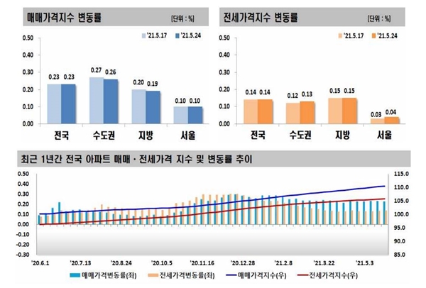 [¾ÆÀ¯°æÁ¦=±ÇÇýÁø ±âÀÚ] ÃÖ±Ù Çѱ¹ºÎµ¿»ê¿øÀÌ ¹ßÇ¥ÇÑ ‘ÁÖ°£¾ÆÆÄÆ® °¡°Ýµ¿Çâ’¿¡ µû¸£¸é 5¿ù 4ÁÖ(Áö³ 24ÀÏ ±âÁØ) Àü±¹ ¾ÆÆÄÆ®°ªÀº 0.23% »ó½ÂÇØ ÀüÁÖÀÇ »ó½ÂÆøÀ» À¯ÁöÇß´Ù.