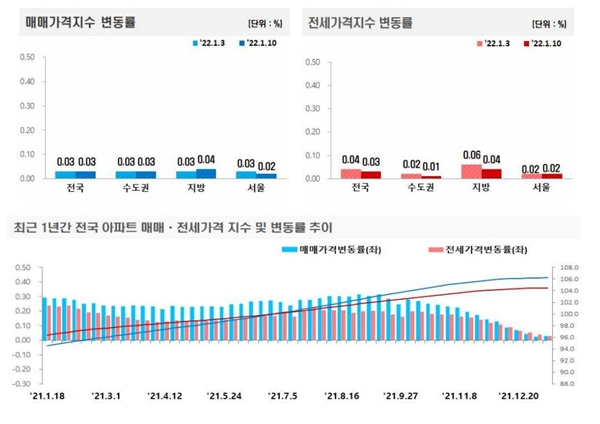 [¾ÆÀ¯°æÁ¦=±ÇÇýÁø ±âÀÚ] ÃÖ±Ù Çѱ¹ºÎµ¿»ê¿øÀÌ ¹ßÇ¥ÇÑ ‘ÁÖ°£¾ÆÆÄÆ® °¡°Ýµ¿Çâ’¿¡ µû¸£¸é 1¿ù 2ÁÖ(Áö³ 10ÀÏ ±âÁØ) Àü±¹ ¾ÆÆÄÆ®°ªÀº 0.03% »ó½ÂÇϸç ÀüÁÖ¿Í »ó½ÂÆøÀÌ °°¾Ò´Ù. ¼öµµ±ÇÀº »ó½ÂÆøÀ» À¯ÁöÇß°í ¼¿ïÀº ´õ Ãà¼ÒÇß´Ù. Áö¹æ(±¤¿ª½Ã¤ý8°³µµ)Àº »ó½ÂÆøÀÌ È®´ëµÆ´Ù.
