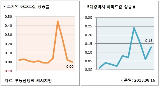 ´ë±¸½Ã 0.85%, ¿ï»ê½Ã 0.39%, ´ëÀü½Ã 0.26%, ±¤Áֽà 0.23%, ºÎ»ê½Ã 0.02% µîÀ¸·Î 5´ë ±¤¿ª½Ã´Â ´ëºÎºÐ »ó½Â¼¼¸¦ º¸¿´´Ù. ´ë±¸½Ã¿¡¼´Â ´Þ¼º±º 3.65%, ³²±¸ 3.14%, ¼ö¼º±¸ 0.01% µîÀ¸·Î Áý°ª»ó½Â·üÀÌ ³ôÀº Áö¿ªÀÌ ¸¹¾Ò´Ù. ÀÌ¾î ´Þ¼±¸ 0.00%, µ¿±¸ 0.00%, Áß±¸ 0.00%, ¼±¸ 0.00%, ºÏ±¸ -0.01% µîÀÇ ¼øÀ̾ú´Ù.