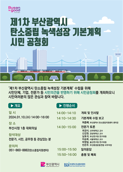 ºÎ»ê½Ã °ü°èÀÚ´Â “À̹ø °øÃ»È¸¿¡ Á¦½ÃµÈ ÀǰßÀº ź¼ÒÁ߸³ ³ì»ö¼ºÀå ±âº» °èȹÀ» ¸¸µå´Â µ¥ ¹Ø°Å¸§ÀÌ µÉ °Í”À̶ó¸ç, “½Ã¹Î»çȸÀÇ ´Ù¾çÇÑ ÀǰßÀ» ¼ö·ÅÇØ °èȹÀ» ³»½Ç ÀÖ°Ô ¼ö¸³Çϰí, À̸¦ ±â¹ÝÀ¸·Î ºÎ»êÇü ź¼ÒÁ߸³ Á¤Ã¥À» ÃßÁøÇØ ±Û·Î¹ú Çãºêµµ½Ã ½ÇÇö¿¡ ¾ÕÀå¼°Ú´Ù”¶ó°í Æ÷ºÎ¸¦ ÀüÇß´Ù.