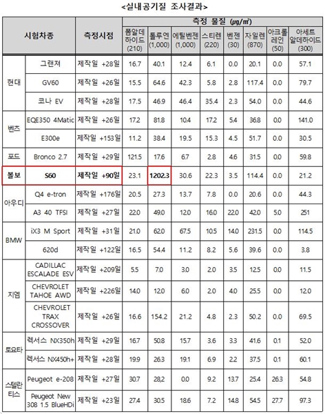 Á¶»ç ´ë»ó Â÷·® Áß ÇϳªÀÎ º¼º¸ S60ÀÇ ÀϺΠÁ¶»ç Â÷·®¿¡¼ Åç·ç¿£ ±Ç°í±âÁØÀ» ÃʰúÇØ ¿øÀÎ Á¶»ç °á°ú, Åç·ç¿£ÀÌ Æ÷ÇÔµÈ ½Ç³» ¿À¿° ¼¼Ã´ ¾àǰÀ¸·Î ÀÎÇØ ±âÁØÄ¡¸¦ ÃʰúÇÑ °ÍÀ¸·Î ÆÄ¾ÇµÆ´Ù.