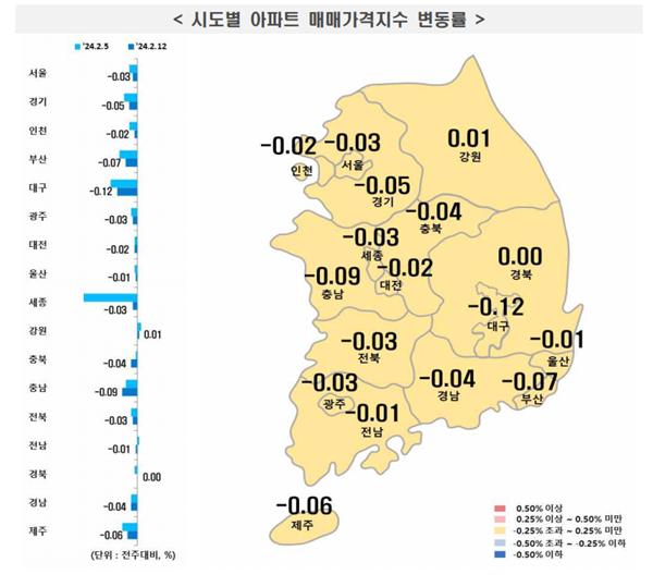 Áö¹æ(-0.05%)Àº ½Ã¤ýµµº°·Î ºÎ»ê(-0.07%), ´ëÀü(-0.02%), ´ë±¸(-0.12%), Ãæ³²(-0.09%), ÃæºÏ(-0.04%), °¿ø(0.01%), ±¤ÁÖ(-0.03%), ¿ï»ê(-0.01%), ¼¼Á¾(-0.03%), Àü³²(-0.01%), ÀüºÏ(-0.03%), °æ³²(-0.04%), °æºÏ(0%), Á¦ÁÖ(-0.06%) µîÀÇ °á°ú¸¦ º¸¿´´Ù.