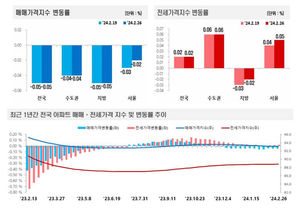 [¾ÆÀ¯°æÁ¦=±ÇÇýÁø ±âÀÚ] ÃÖ±Ù Çѱ¹ºÎµ¿»ê¿øÀÌ ¹ßÇ¥ÇÑ ‘ÁÖ°£¾ÆÆÄÆ® °¡°Ýµ¿Çâ’¿¡ µû¸£¸é 2¿ù 4ÁÖ(Áö³ 26ÀÏ ±âÁØ) Àü±¹ ¾ÆÆÄÆ®°ªÀº Ç϶ô(-0.05%)À» ±â·ÏÇß´Ù. ¼öµµ±Ç°ú Áö¹æÀº Ç϶ôÆø À¯Áö, ¼¿ïÀº Ç϶ôÆø Ãà¼ÒÇÑ »óȲÀÌ´Ù.