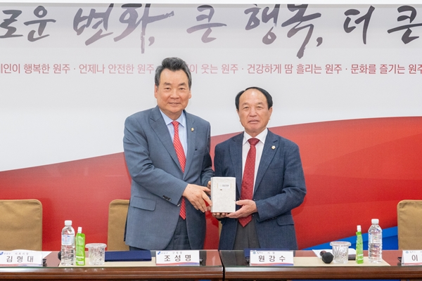 [¾ÆÀ¯°æÁ¦=Á¶Çö¿ì ±âÀÚ] °³²±¸ÀÇȸ(ÀÇÀå ±èÇü´ë)´Â Áö³ 30ÀÏ °¿ø ¿øÁÖ½Ãû¿¡¼ ¿øÁÖ½Ã(½ÃÀå ¿ø°¼ö)¿Í °³²±¸ÀÇ ¿ìÈ£ Çù·Â °È¸¦ À§ÇØ ÁøÇàµÈ Ä£¼±°á¿¬ ü°á½Ä¿¡ Âü¼®Çß´Ù.
