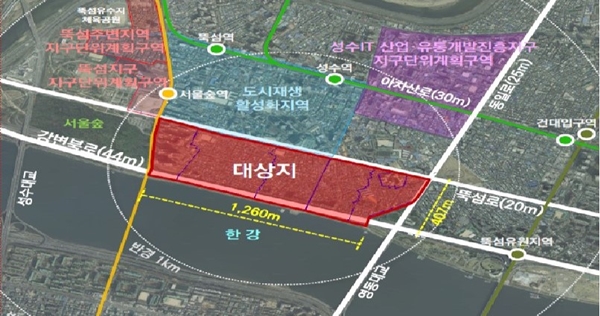 ¼ºµ¿±¸ ¼º´öÁ¤5±æ 18-2(¼º¼ö1°¡1µ¿) ÀÏ´ë ¼º¼öÀü·«Á¤ºñ±¸¿ªºÎÅÍ ÇѰÀ» ¿¬°áÇÏ´Â º¸Çà·ÎÀÌÀÚ °ø¿øÀÌ µÉ µ¤°³°ø¿ø°ú ¹®È°ø°£À¸·Î Á¶¼ºµÉ ¼ö»ó½Ã¼³Àº ¼º¼öÀü·«Á¤ºñ±¸¿ªÀÇ °ø°ø±â¿©·Î Á¶¼ºµÈ´Ù. µ¤°³°ø¿øÀº ¾à 6.8¸¸§³, ¼ö»ó¹®È½Ã¼³Àº ¾à 1¸¸ §³ ±Ô¸ð´Ù.