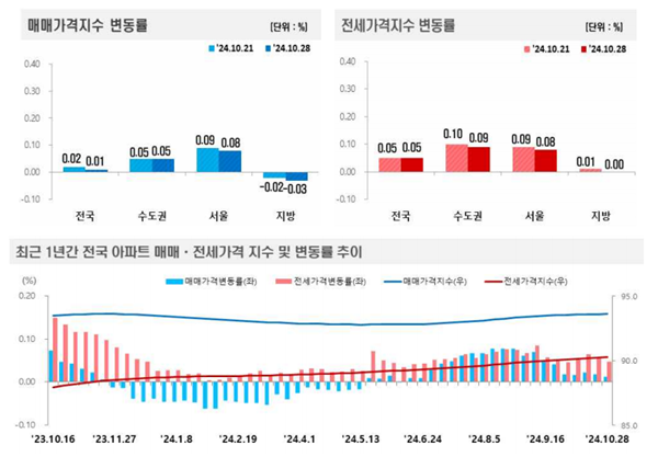 ÇÑÆí, Àü±¹ÀÇ ¾ÆÆÄÆ® Àü¼¼°¡°Ý(0.05%)Àº ÀüÁÖ µ¿ÀÏÇÑ »ó½Â¼¼¸¦ º¸¿´°í, ¼¿ï ¾ÆÆÄÆ® Àü¼Â°ª(0.08%)Àº ÀüÁÖ(0.09%) ´ëºñ ³·Àº »ó½Â¼¼¸¦ º¸ÀÎ »óȲÀÌ´Ù.