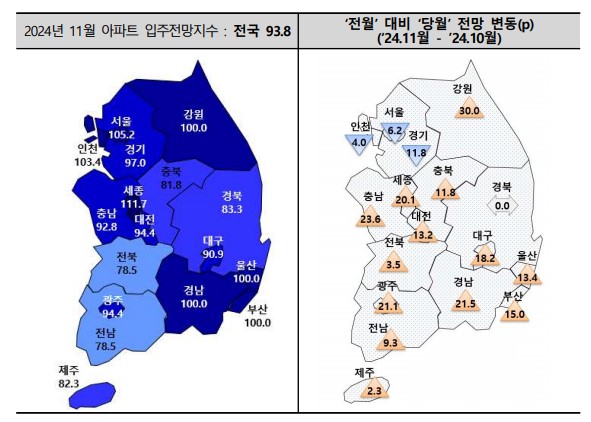 ÀÌ´Þ Àü±¹ ¾ÆÆÄÆ® ÀÔÁÖÀü¸ÁÁö¼ö´Â ¿ÃÇØ 9¿ù 83.1¿¡¼ 10.7p ¿À¸¥ 93.8·Î Á¶»çµÆ´Ù. ¼öµµ±ÇÀº 7.3p(109.2→101.9) Ç϶ôÇÏ´Â ¹Ý¸é, ±¤¿ª½Ã´Â 16.8(81.7→98.5), µµ Áö¿ªÀº 12.7p(74.4→87.1) »ó½ÂÇÒ °ÍÀ¸·Î Àü¸ÁµÆ´Ù.