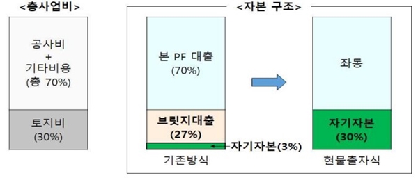 À̸¦ ÅëÇØ PF»ç¾÷ÀÇ Æò±Õ ÀÚ±âÀÚº»ºñÀ²À» 2026³â 10%, 2027³â 15%, 2028³â 20%±îÁö ²ø¾î ¿Ã¸°´Â°Ô Á¤ºÎÀÇ ¸ñÇ¥´Ù. ÀÚ±âÀÚº»ºñÀ²À» ½ÃÇàÀÚ°¡ Á÷Á¢ °ü¸®¤ý¿î¿µÇÏ´Â °³¹ß»ç¾÷¿¡´Â ¿ëÀû·ü, °ø°ø±â¿© ¿ÏÈ µî µµ½Ã±ÔÁ¦ Ư·Ê¸¦ ºÎ¿©ÇÑ´Ù. ÀÚ±âÀÚº»ºñÀ²ÀÌ ³ô¾ÆÁø ¸¸Å º¸Áõ ¸®½ºÅ©°¡ ÁÙ¾îµé¹Ç·Î PF º¸Áõ ¼ö¼ö·áµµ ÇÒÀεȴÙ. ÀºÇà¤ýº¸Çè»ç°¡ ÀÚȸ»ç ¼ÒÀ¯³ª ÆÝµå µî °£Á¢ÅõÀÚ ¹æ½ÄÀ¸·Î Àå±âÀÓ´ëÁÖÅûç¾÷¿¡ Âü¿©ÇÒ ¼ö ÀÖµµ·Ï °ü·Ã ¹ý·Éµµ °³Á¤ÇÑ´Ù.