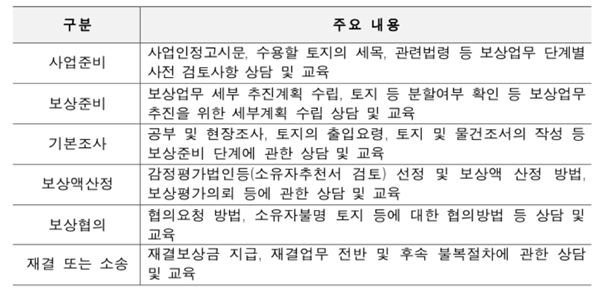 º¸»ó¾÷¹« ´Ü°èº° º¸»ó ÀýÂ÷, ÁÖ¿ä À¯ÀÇ»çÇ× ¾È³»¤ý»ó´ã, ±³À°Áö¿øÀ» ÅëÇØ ¡¸ÅäÁöº¸»ó¹ý¡¹¿¡ µû¶ó »ç¾÷½ÃÇàÀÚ°¡ ½ÃÇàÇÏ´Â °øÀÍ»ç¾÷ÀÇ º¸»ó¾÷¹«¸¦ Áö¿øÇÒ ¿¹Á¤ÀÌ´Ù. »ç¾÷½ÃÇàÀÚ°¡ º¸»ó¾÷¹«¸¦ Á÷Á¢ ¼öÇàÇÏ´Â °æ¿ì·Î¼ »ç¾÷ÀÎÁ¤°í½Ã, ¿¹»êÈ®º¸ µîÀÌ ¿Ï·áµÅ Áï½Ã ÄÁ¼³ÆÃÀÌ °¡´ÉÇÑ °øÀÍ»ç¾÷À» ¿ì¼± ¼±Á¤ÇØ ÁøÇàÇÑ´Ù.