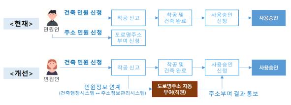 ±¹Åä±³ÅëºÎ(Àå°ü ¹Ú»ó¿ì¤ýÀÌÇÏ ±¹ÅäºÎ)´Â °ÇÃ๰ ½ÅÃà ½Ã Âø°ø ½Å°í°¡ ¿Ï·áµÇ¸é °ÇÃàÁÖ°¡ ½ÅûÇÏÁö ¾Ê¾Æµµ ÁöÀÚü°¡ ¾Ë¾Æ¼ µµ·Î¸íÁÖ¼Ò¸¦ ºÎ¿©Çϵµ·Ï ¾÷¹«ÀýÂ÷¿Í ½Ã½ºÅÛ °³¼±À» ¿Ï·áÇß´Ù.