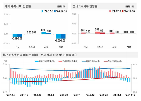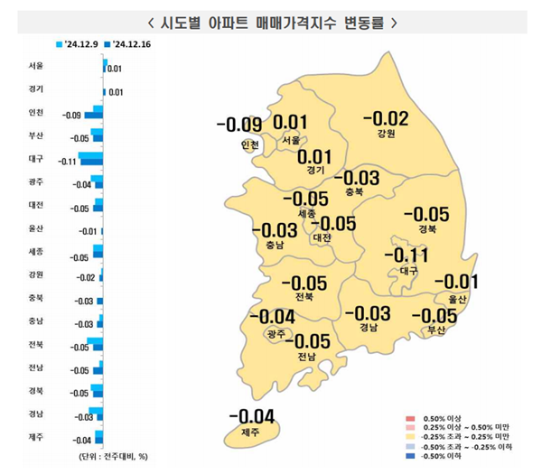 [¾ÆÀ¯°æÁ¦=±ÇÇýÁø ±âÀÚ] ÃÖ±Ù Çѱ¹ºÎµ¿»ê¿øÀÌ ¹ßÇ¥ÇÑ ‘ÁÖ°£¾ÆÆÄÆ® °¡°Ýµ¿Çâ’¿¡ µû¸£¸é 12¿ù 3ÁÖ(Áö³ 16ÀÏ ±âÁØ) Àü±¹ ¾ÆÆÄÆ®°ªÀº Ç϶ô(-0.03%)À» ±â·ÏÇß´Ù. ¼öµµ±ÇÀº º¸ÇÕ À¯Áö, ¼¿ïÀº »ó½ÂÆø Ãà¼Ò, Áö¹æÀº Ç϶ôÆø À¯ÁöÇÑ »óȲÀÌ´Ù.