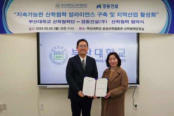 [¾ÆÀ¯°æÁ¦=¹Úâ¿í ±âÀÚ] ºÎ»ê´ëÇб³ »êÇÐÇù·Â´Ü(´ÜÀå °Á¤Àº)°ú °æµ¿°Ç¼³(»çÀå ±èÁ¤±â)ÀÌ Áö¿ª »ê¾÷ ¹ßÀü°ú ¹Ì·¡ ÀÎÀç ¾ç¼º Çù·Â °È¸¦ À§ÇØ ¼ÕÀ» Àâ¾Ò´Ù.