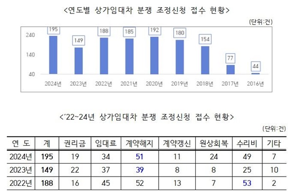 ÀÌ´Þ 5ÀÏ ¼¿ï½Ã´Â 2024³â »ó°¡°Ç¹°ÀÓ´ëÂ÷ºÐÀïÁ¶Á¤À§¿øÈ¸¿¡ Á¢¼öµÈ ºÐÀïÁ¶Á¤ °Ç¼ö´Â 195°ÇÀ¸·Î 2023³â ´ëºñ 31% Áõ°¡Çß´Ù°í ¹àÇû´Ù. ÀÌ´Â 2016³â Á¶Á¤À§¿øÈ¸ Ãâ¹ü ÀÌÈÄ ¿ª´ë ÃÖ´ëÄ¡´Ù.