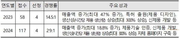 ¼±Á¤µÈ ¾÷ü´Â 2Â÷·Ê¿¡ °ÉÃÄ ÃÖ´ë 4500¸¸ ¿øÀÇ Áö¿ø±ÝÀ» ¹ÞÀ» ¼ö ÀÖÀ¸¸ç, Áö¿ø±ÝÀº »óǰ°³¹ß, ±â¼ú °³¹ß, ¼³ºñ ´ë¿©, ¸¶ÄÉÆÃ µî¿¡ ÀÚÀ²ÀûÀ¸·Î »ç¿ëÇÒ ¼ö ÀÖ´Ù.
