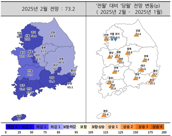 ÃÖ±Ù ÁÖÅûê¾÷¿¬±¸¿ø(ÀÌÇÏ Áֻ꿬)ÀÌ ÁÖÅûç¾÷ÀÚ¸¦ ´ë»óÀ¸·Î ¼³¹®Á¶»çÇÑ °á°ú ÁÖÅûç¾÷°æ±âÀü¸ÁÁö¼ö´Â Àü¿ù ´ëºñ 11.6p »ó½ÂÇÑ 73.2¸¦ ±â·ÏÇß´Ù. ÁÖÅûç¾÷°æ±âÀü¸ÁÁö¼ö´Â 85 ¹Ì¸¸Àº Çϰ ±¹¸é, 85~115 ¹Ì¸¸Àº º¸ÇÕ ±¹¸é, 115~200 ¹Ì¸¸Àº »ó½Â ±¹¸éÀ¸·Î ±¸ºÐÇÑ´Ù.