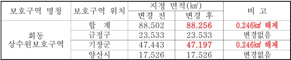 °á±¹ Áö³ 1¿ù 20ÀÏ È¯°æºÎÀÇ Á¶°ÇºÎ ½ÂÀÎ(¡ã»ó½Ã ¼öÁú 2µî±Þ À¯Áö¸¦ À§ÇÑ ¼öÁú°ü¸®´ëÃ¥ ÀÌÇà ¡ã»ó¼ö¿øº¸È£±¸¿ª ÇØÁ¦ Áö¿ª ³°³¹ß ±ÝÁö¹æ¾È ¸¶·Ã µî)À» ¹Þ¾Æ³Â°í ÀÌÈÄ ½Ç¹«ÀûÀÎ ÀýÂ÷ °ÅÃÄ ÀÌ´Þ 19ÀÏ ‘»ó¼ö¿øº¸È£±¸¿ª ÇØÁ¦ °ø°í’¸¦ ÅëÇØ ÃÖÁ¾ ÇØÁ¦¸¦ È®Á¤Çß´Ù.