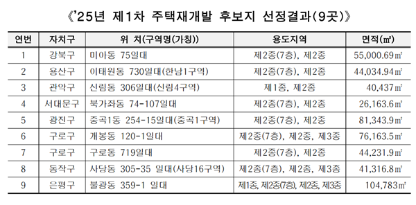 [¾ÆÀ¯°æÁ¦=Á¶¸íÀÇ ±âÀÚ] ¼¿ï½Ã´Â Áö³ 2¿ù 27ÀÏ ¿¸° ‘Á¦1Â÷ ÁÖÅÃÀç°³¹ß»ç¾÷ Èĺ¸Áö ¼±Á¤À§¿øÈ¸’¿¡¼ ½Å¼ÓÅëÇÕ±âȹ Àç°³¹ß Èĺ¸Áö 9°÷À» Ãß°¡ ¼±Á¤Çß´Ù°í ¹àÇû´Ù.