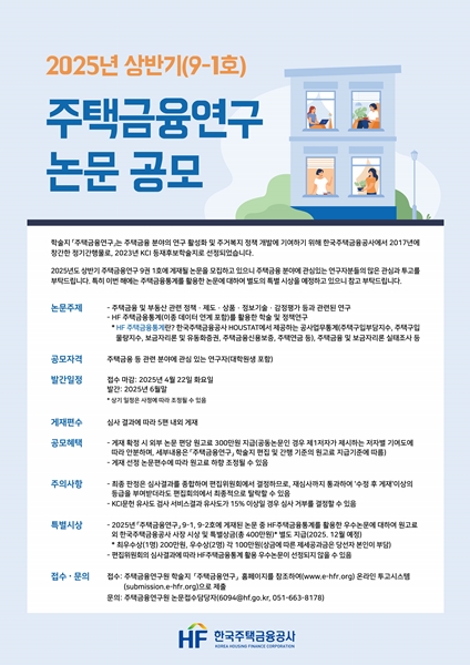 [¾ÆÀ¯°æÁ¦=Á¶¸íÀÇ ±âÀÚ] Çѱ¹ÁÖÅñÝÀ¶°ø»ç(HF)´Â ÁÖÅñÝÀ¶¿¬±¸¸¦ Ȱ¼ºÈÇϰí Áְź¹ÁöÁ¤Ã¥À» °³¹ßÇϰíÀÚ ¿ÃÇØ »ó¹Ý±â ‘ÁÖÅñÝÀ¶¿¬±¸’ ³í¹® °ø¸ð¸¦ ½Ç½ÃÇÑ´Ù°í ÃÖ±Ù ¹àÇû´Ù.